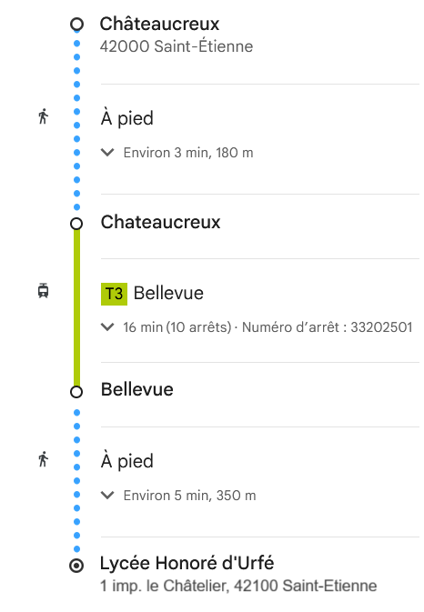 Pour se rendre au lycée depuis la gare Saint-Etienne Châteaucreux :
